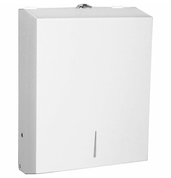 | Marketing Information | Metal cabinet is designed to efficiently dispense single, C-fold and multifold towels. Cabinet is made of metal. Slot at the bottom of the dispenser is 10" wide with 2" depth in the middle and 1" depth at the ends of the slot. Wall-mounting hardware includes four screws and four plastic wall plugs. |