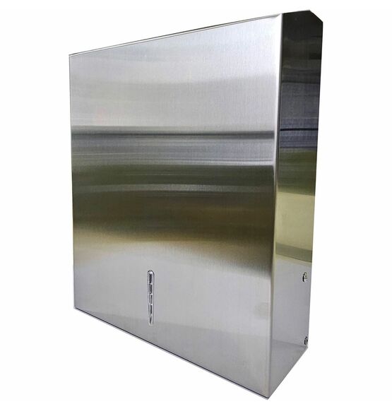 | Marketing Information | Metal cabinet is designed to efficiently dispense single, C-fold and multifold towels. Cabinet is made of stainless steel. Slot at the bottom of the dispenser is 10" wide with 2" depth in the middle and 1" depth at the ends of the slot. Wall-mounting hardware includes four screws and four plastic wall plugs. |