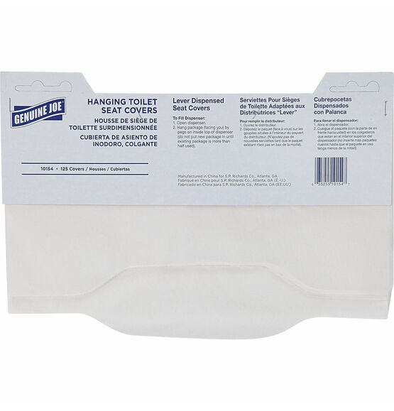 | Marketing Information | Toilet seat covers provide a hygienic way to cover toilet seats to help maintain sanitary conditions. They are compatible with levered dispensers for one-at-a-time dispensing to minimize wasteful use. Quarter-fold covers contain 20 percent recycled content and 80 percent virgin-paper content. |