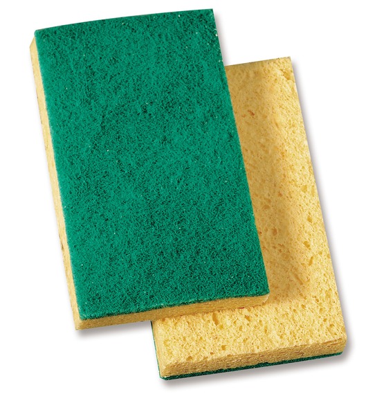 | Marketing Information | Medium-Duty Sponge Scrubber includes a utility cellulose sponge on one side and medium-duty scouring pad on the other side. It is ideal for cleaning ovens, walls, countertops, sinks, bathrooms and tables. Hospitality-size scrubber rinses easily and is individually wrapped for more sanitary storage. Antimicrobial treatment protects the product from microbial growth so it lasts longer. |