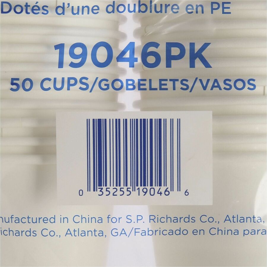 | Marketing Information | Hot cups are perfect for your beverage center or breakroom. Polyurethane-lined, single walls are designed to hold hot beverages and help prevent leaks. Use these cups for coffee, tea, hot chocolate and more. They are made of 100 percent virgin material. Smooth rolled rim enhances the cup's strength and ensures a secure lid fit. Simple white color will coordinate with most decor and beverage accessories. Lids are sold separately. |