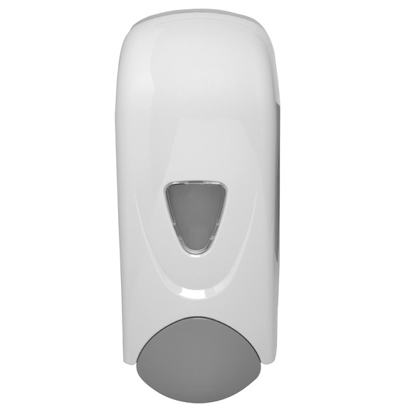 | Marketing Information | Foam soap dispenser offers a sleek, smooth modern design to complement any decor. Sight window indicates level of soap remaining. Dispenser is made of durable ABS for extended lifetime. Included refillable bottle reduces waste and features large screw cap for easy refilling. Bottle holds 1000 ml. (33.8 oz.) and accepts most foam soaps and bulk foam sanitizers. Dispenser also features an ADA-compliant push bar. |