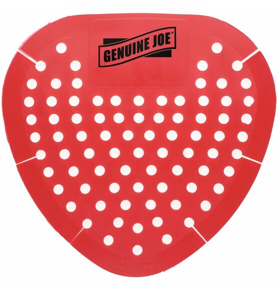 | Marketing Information | Genuine Joe Deodorant Urinal Screens effectively traps debris and reduce splash back. The vinyl screens leave behind a refreshing scent that neutralizes odors in bathroom settings. |