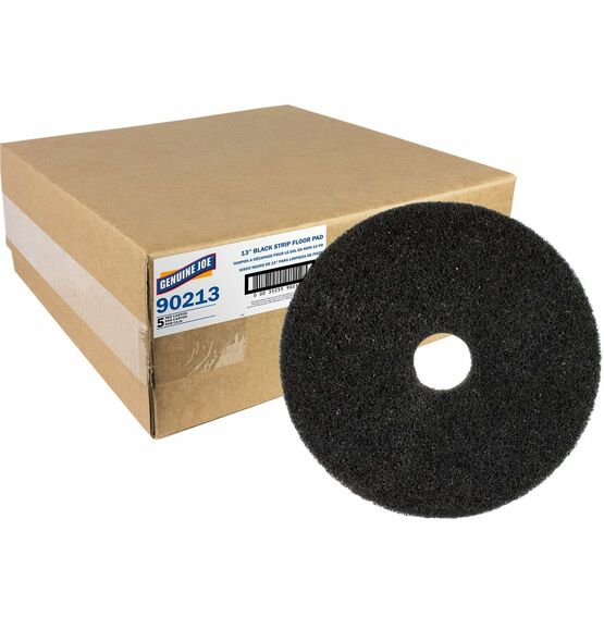 | Marketing Information | Heavy-duty floor stripping pad works with your stripping solution and floor machine agitation to remove all finish from floors. Open-web design allows dirt to enter the fiber and resist soil load on the face of the pad for maximum use. Resiliency allows pad to remain flexible to reach depressions. Heavier denier fibers mean longer-lasting pads. Harder resin is abrasive for aggressive stripping action. Floor pad is designed for use at speeds between 175 to 350 RPM in rotary/automatic scrubbers. |
