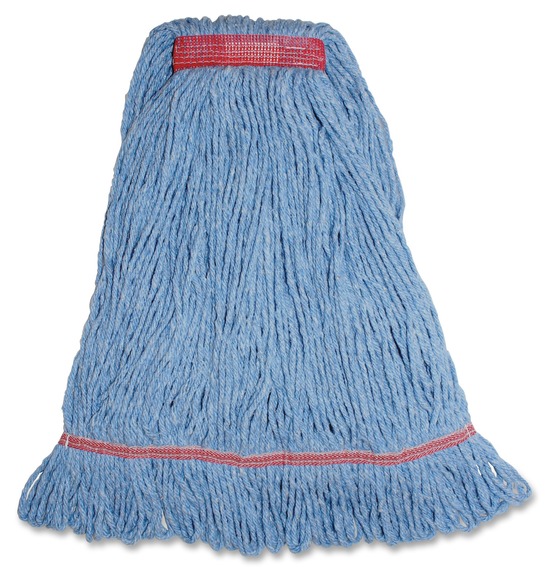 | Marketing Information | Large mophead with a 1-1/4" narrow headband is ideal for general cleaning and disinfecting. Four-ply synthetic blend of rayon and cotton offers added tensile strength and durability. Synthetic blend fibers absorb six to seven times their weight. Looped-end yarn reduces fraying and linting. Tailband creates larger and more consistent floor coverage while mopping, reducing missed spots and labor. This mophead is the ideal choice when the mop will be laundered. |